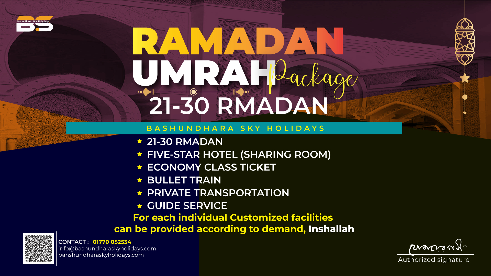 Experience the spiritual blessings of the final ten days of Ramadan with our 2025 Umrah Ramadan Package. Bashundhara Sky Holidays offers a seamless experience with exceptional services to help you focus on worship and reflection: